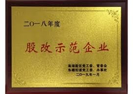 2019年01月 獲得股改示范企業(yè)榮譽(yù)稱號(hào);