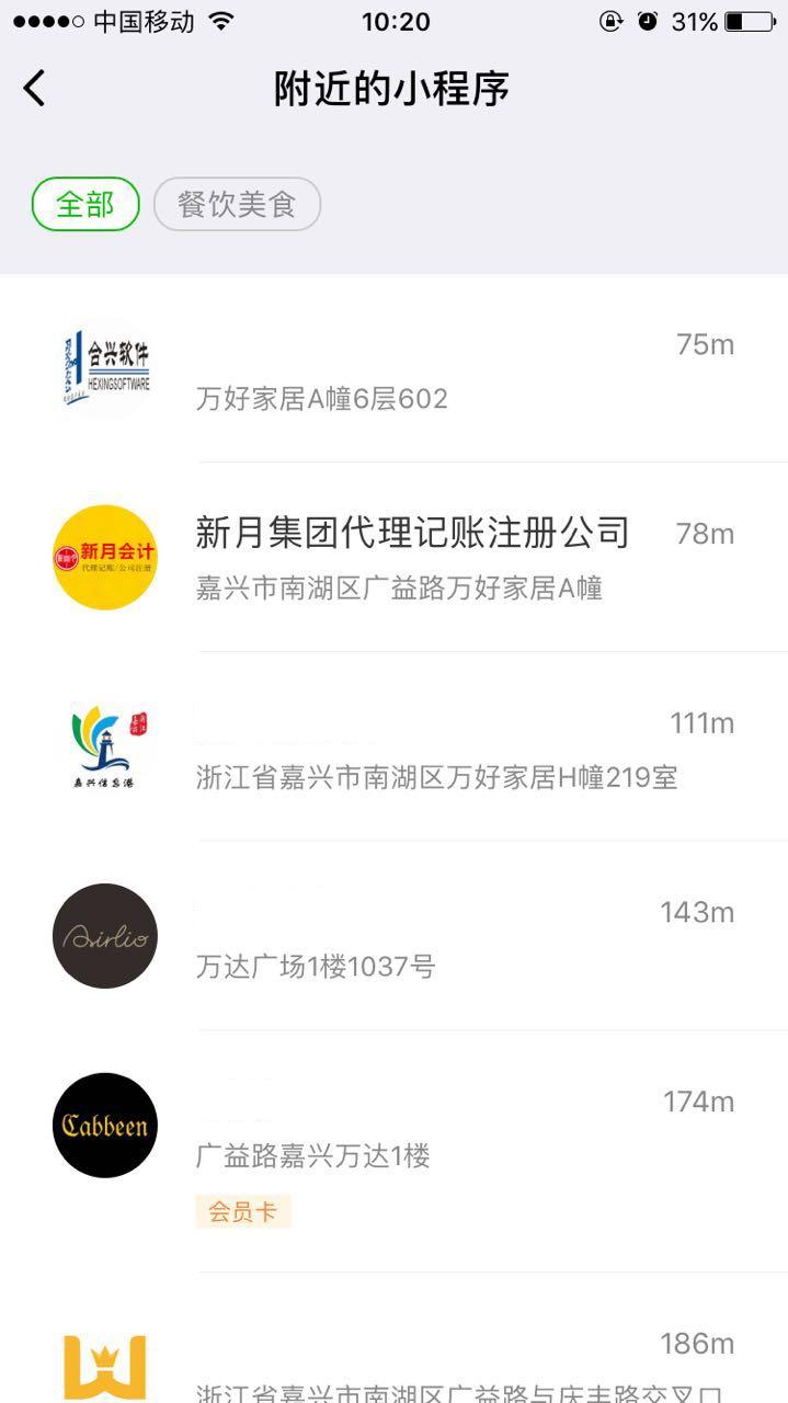 搜索欄下面的“附近的小程序”,點進去可以查看你附近的所有小程序;