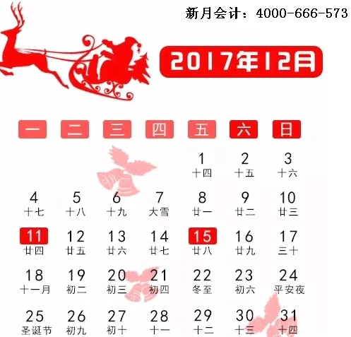 年終12月,迎來2017年最后一次申報納稅,征期日歷及時送上!