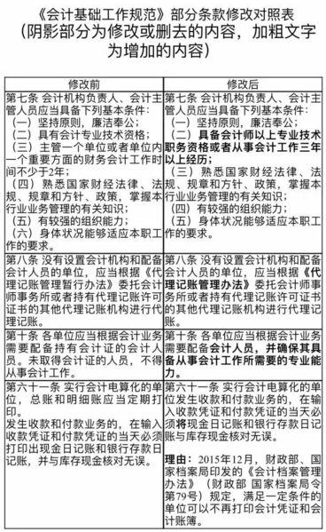 附件:1.《代理記賬管理辦法》部分條款修改對(duì)照表 2.《會(huì)計(jì)基礎(chǔ)工作規(guī)范》部分條款修改對(duì)照表