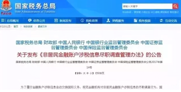 按照稅務(wù)總局公布的時間表來看,在本月底就將完成賬戶超過600萬的盡職調(diào)查,那么從2018年1月1號開始,將全面清查所有的賬戶,并且將在2018年9月進行第一次涉稅信息交換。